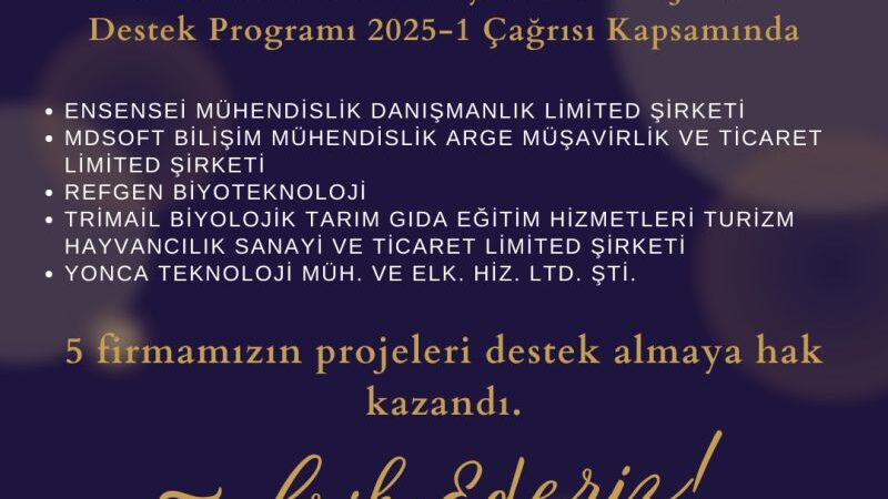 Ankara Üniversitesi Teknokent Firmalarından Büyük Başarı! TÜBİTAK 1501 Sanayi Ar-Ge Projeleri Destek Programı 2025-1 çağrısı kapsamında, aşağıda yer alan firmalarımızın projeleri destek almaya hak kazanmıştır: ✅ ENSENSEİ MÜHENDİSLİK DANIŞMANLIK LİMİTED ŞİRKETİ ✅ MDSOFT BİLİŞİM MÜHENDİSLİK ARGE MÜŞAVİRLİK VE TİCARET LİMİTED…