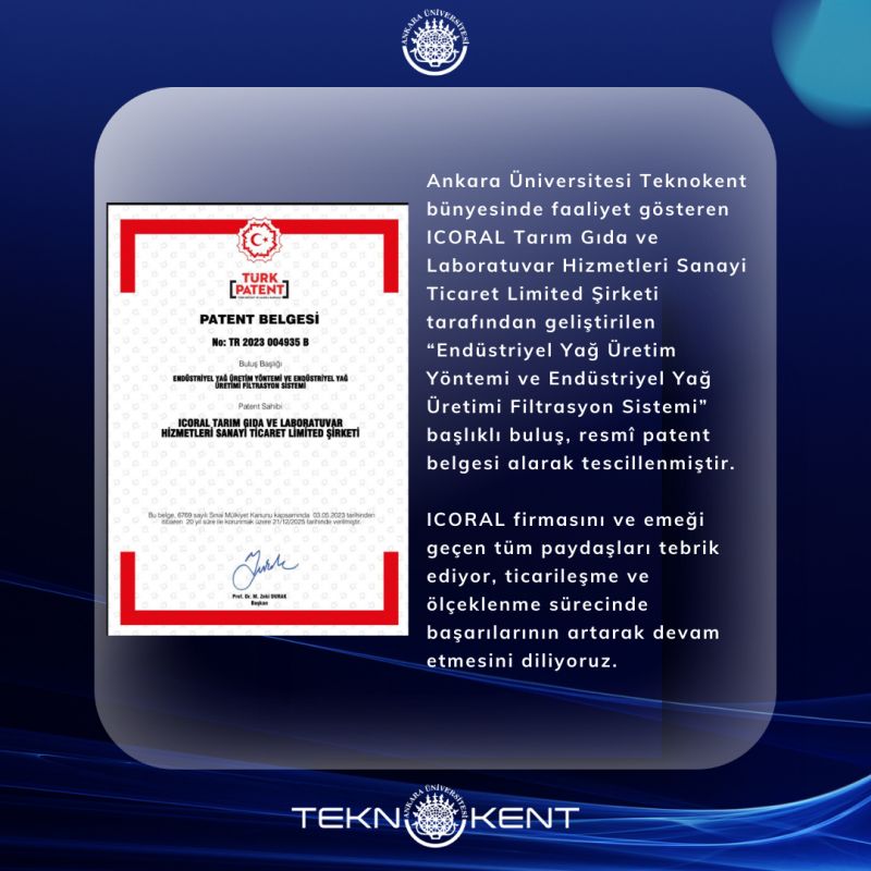 Bu önemli başarı; üniversite–sanayi iş birliği ekosisteminin, yenilikçi fikirlerin katma değeri yüksek teknolojilere dönüşmesindeki gücünü bir kez daha ortaya koymaktadır. Ankara Üniversitesi Teknokent olarak, Ar-Ge odaklı çalışmalarıyla ülkemizin üretim ve teknoloji kapasitesine katkı sunan firmalarımızı desteklemeye devam ediyoruz.